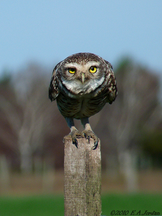 La lechucita me cabeceaba en el poste, asi que esperé y calculé para disparar. Desde el auto; casi son recorte, sólo para hacer vertical.