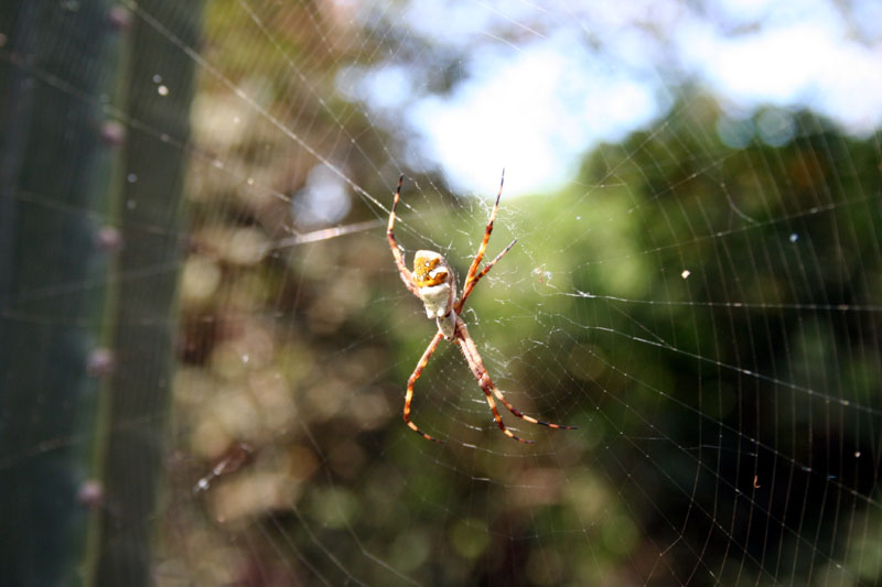 Hola Hector, bienvenido. Estas arañas son de la especie Argiope Argentata, fijate la proxima de hacerle un mayor acercamiento, tienen un diseño muy interesante en la zona superior del abdomen. En cuanto a los fondos, siempre conviene ir moviendose con la camara hasta que encontremos una zona oscura que contraste con el insecto, asi se destaca mejor.