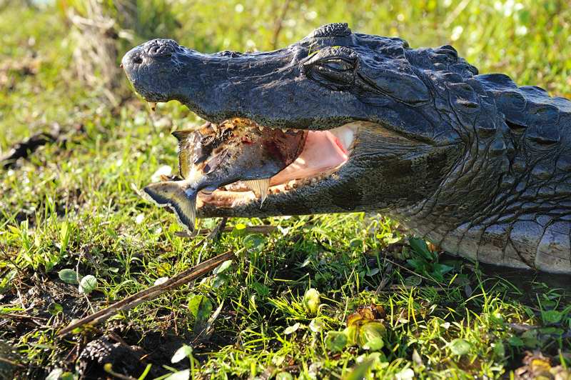 En esta ocasión, para cambiar un poco el tema de las aves estoy subiendo una que saqué del bote casi al ras del piso (usando el live view) de un yacaré obero deglutiendo una pobre piraña. Lo que mucho me costó es el tema del contraluz, pero creo se puede ver la escena bastante clara.