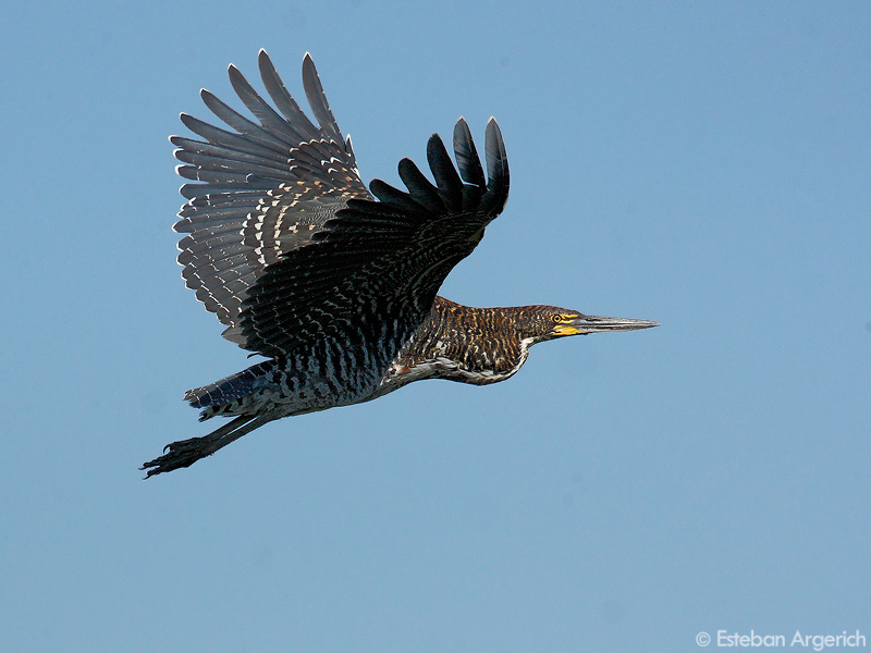 Este joven Hoco Colorado voló para que yo lo retratara sobre una laguna en Carmelo. Me impresionó que no lo viera a pesar de tenerlo muy cerca hasta que voló. Realmente su camuflaje mucho mejor que el mío.