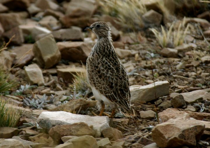 Para mi es un Thinocorus rumicivorus Raza de la Puna. Una Agachona Chica, hembra...pero como se ve la espalda..puede que no sea.