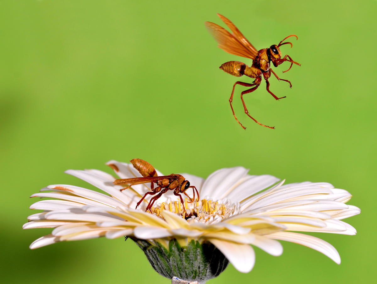 | | el insecto volando es otra avispa de la misma de la que esta posada en la flor (acá en Colombia las llamamos avispas de papel), la caja de luz que ves en el video la utilice para la foto, la construí y la lleve al jardín, cuando las avispas comenzaron a llegar coloque la caja sobre ellas y practicamente quedaron encerradas en la caja de luz, coloque los flash en los extremos y a realizar fotos. (por poco tiempo para no cansarlas) el fondo en una tela con varios tonos verdes. no se si me he explicado bien. gracias por tu comentario |