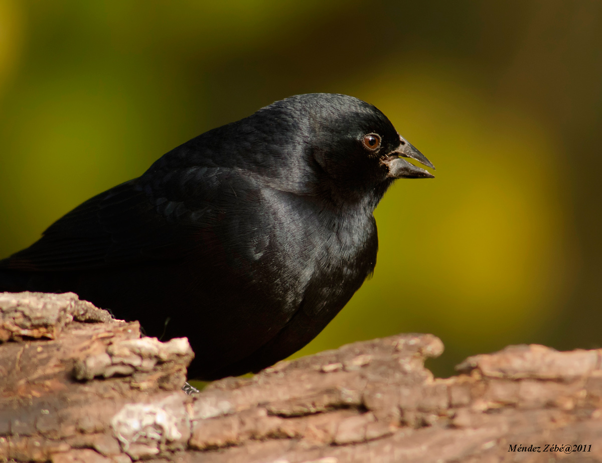 DESCRIPCIÓN. Mide 19 cm. El macho y la hembra son iguales, totalmente negros. Muy similar al macho del tordo renegrido, se diferencia por su cabeza y pico más cortos y compactos; el brillo es metálico pero no violáceo como el otro. Juvenil: igual al tordo músico, gris con las alas marrones. Los subadultos comienzan a mancharse de algunas plumas negras.