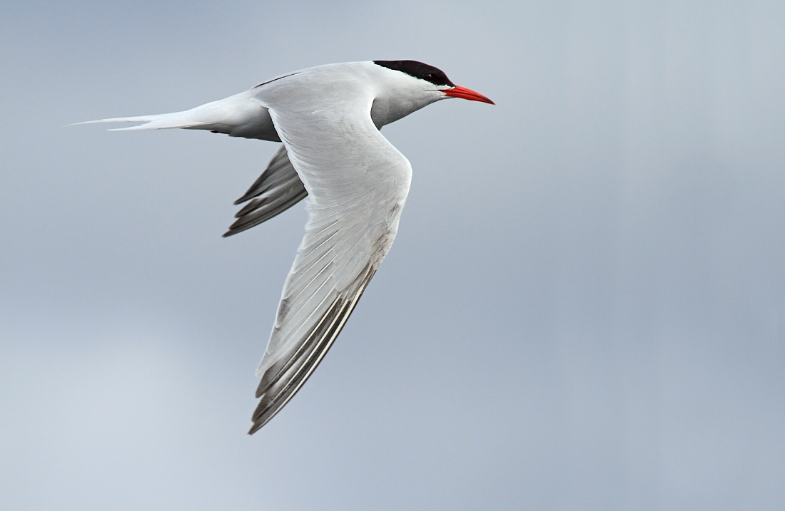 Como me gustan esos gaviotines! La foto parece blanco y negro, salvo por el pico. Muy bueno el cielo tambien.