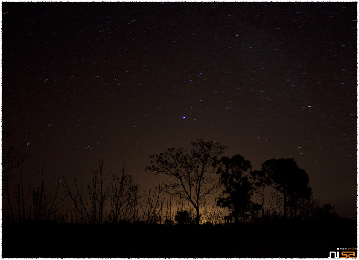En estos casos de fotografia nocturna hay 2 opciones: 1) usar el lente mas angular que tengas, un elevado iso y una velocidad no mas lenta que 0.5'' para poder captar todas las estrellas sin movimiento. 2) usar una velocidad de obturacion bien lente (se recomienda mas de 3 o 4 minutos), y un dato interesante para hacer star trails, es que cuanto mas "tele" se el lente que uses, mas se va a notar el recorrido de las estrellas