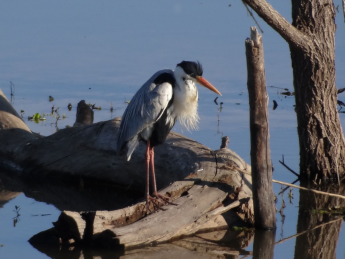 Teniendo 3 ejes verticales (garza y 2 troncos) y ademas la vista bien clavada del ave, en situaciones similares trataría de ubicar a la garza en el tercio de la izquierda y que el peso de los elementos quede mejor repartido. Particularmente en ésta toma se puede mejorar la composición con un recorte vertical.