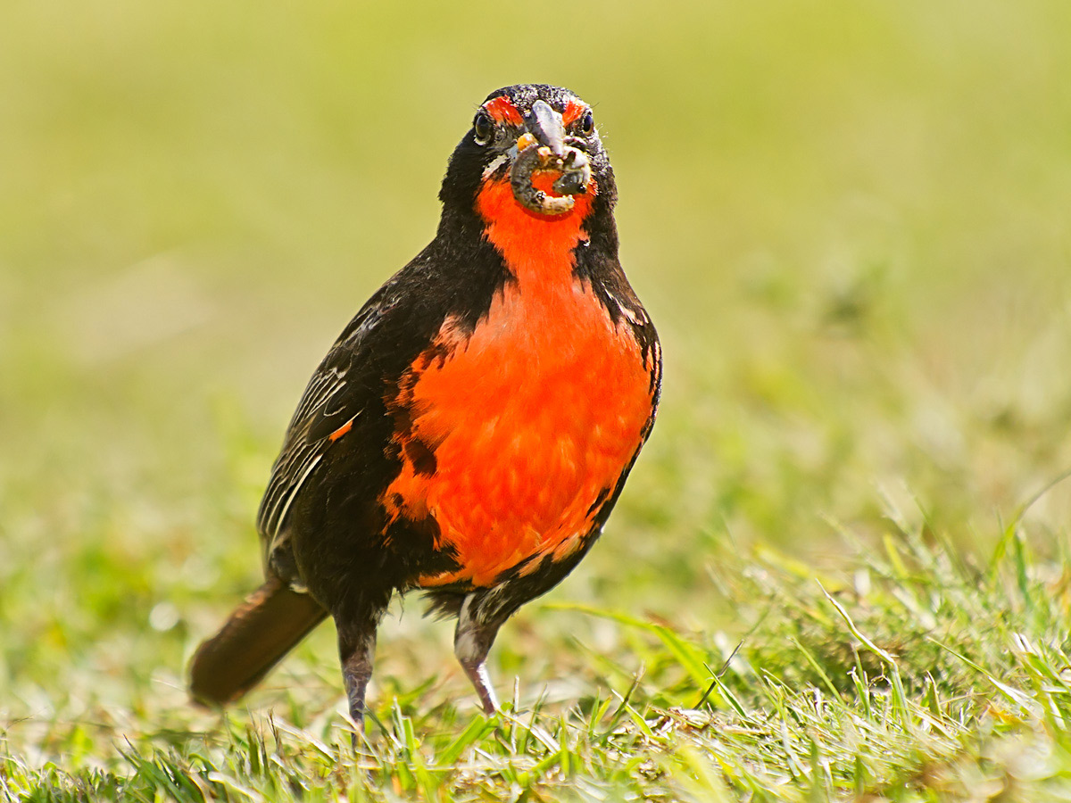 El punto de vista es excelente, la loica con la comida, impresionante! Lo único que me parece es que está sobresaturada, fijate en la sombra del gusano que tiene. Saludos Jorge!