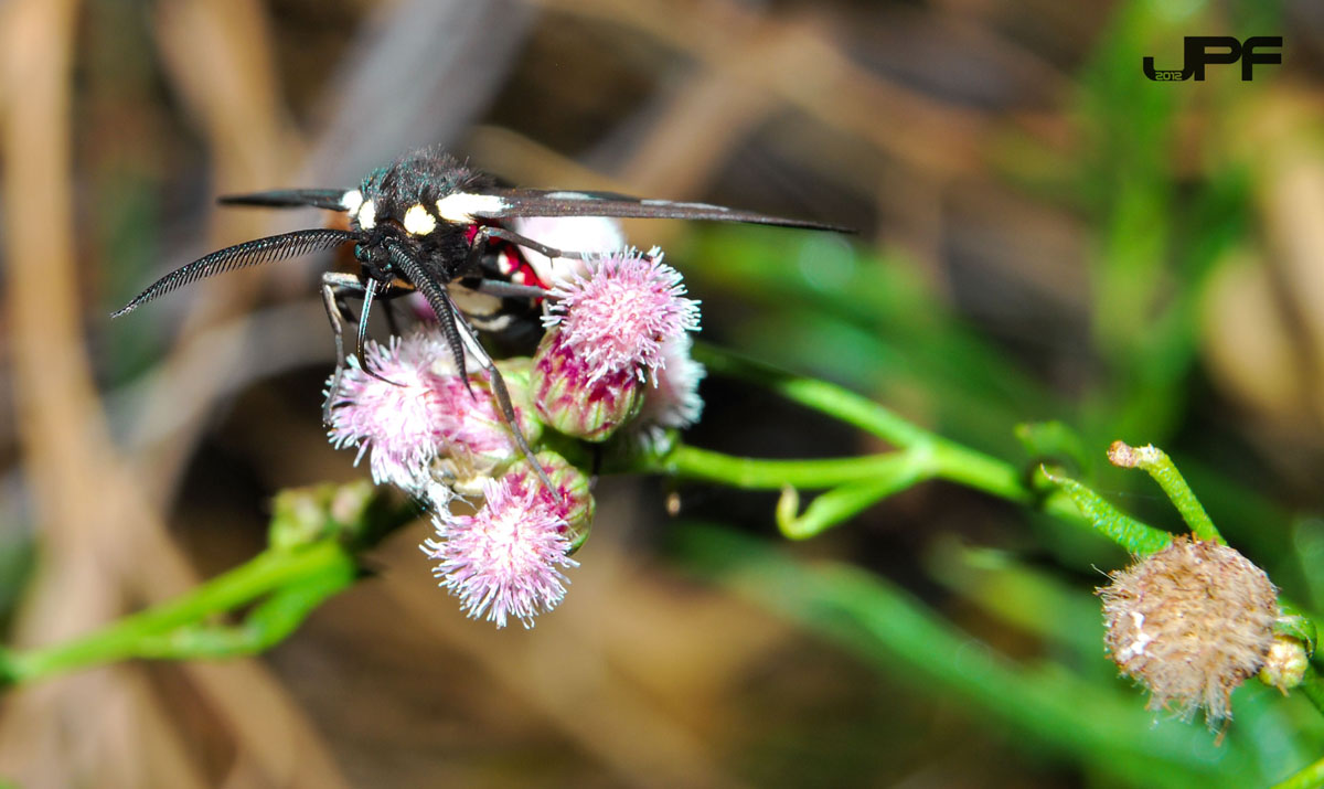 Nikon D60, Lente 18-55 con tubo de extension de 20mm, F16 iso 100, con flash de camara, sin tripode, creo que es una avispa sobre una flor de cardo, la toma se hizo 06-05-2012 en un camping llamado El Cisne a unos 10 km de Senillosa - Neuquen, es parte de un curso que se esta dictando en Neuquen Capital y se organizo un fototrip.