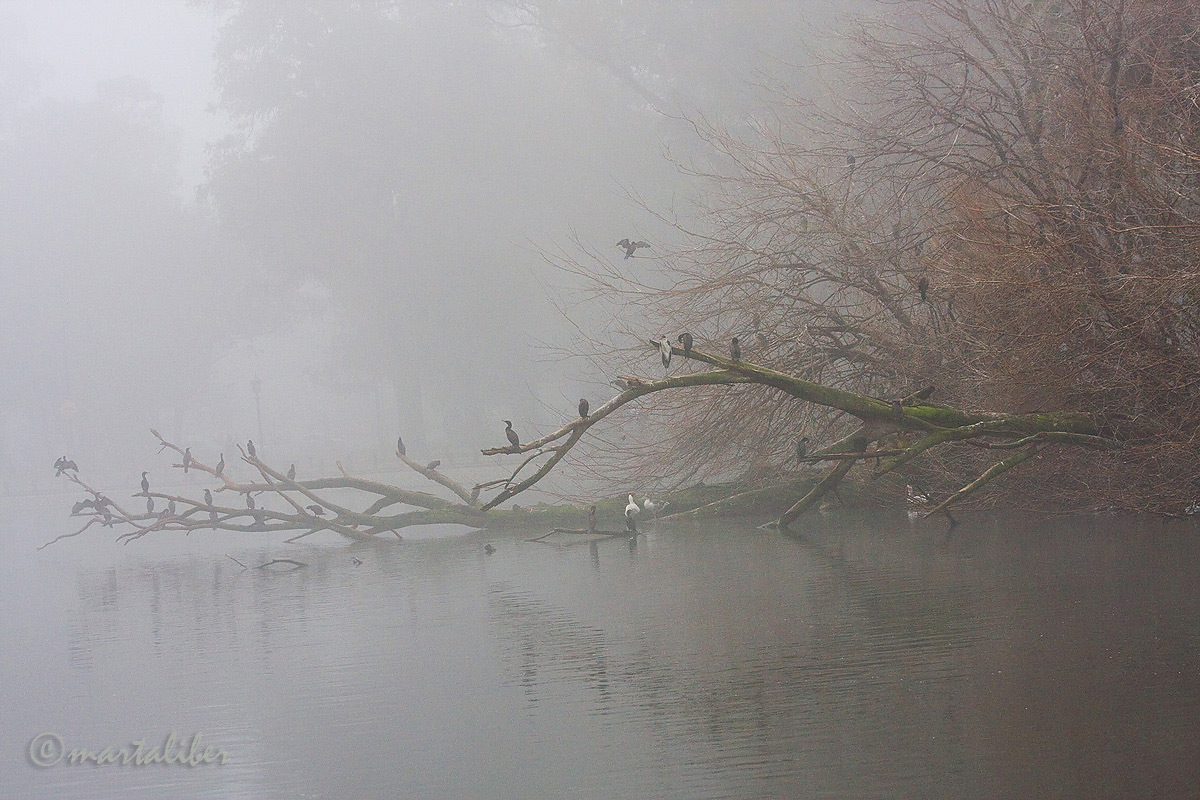 Hola Marta, una atmósfera extraordinaria la que tiene esta imagen y con un buen agrupamiento de aves, las líneas de las ramas también son muy atractivas, ¿el desnivel es a posta por motivos compositivos o no? Muchas gracias y saludos
