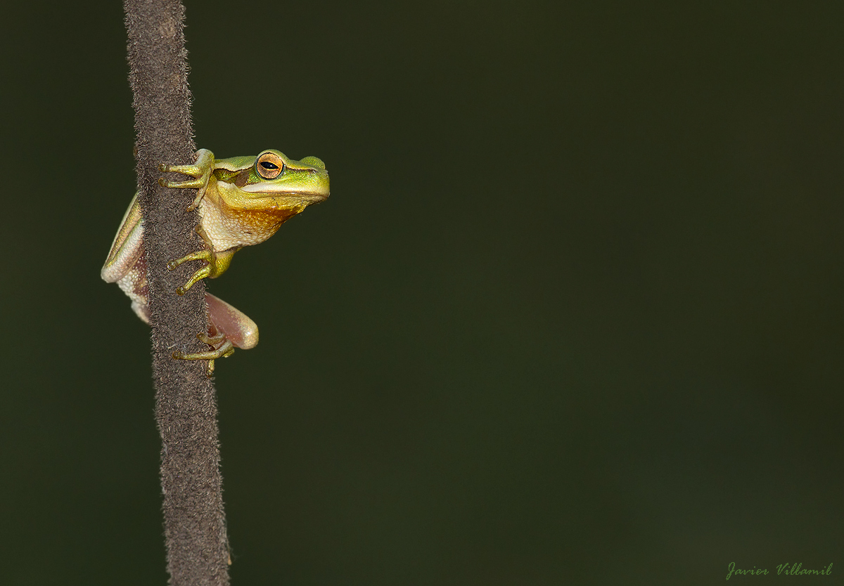 Muy buena Javier, me encantan las ranitas, esta la pillaste muy bien con mucho detalle y un buen fondo, mis felicitaciones.