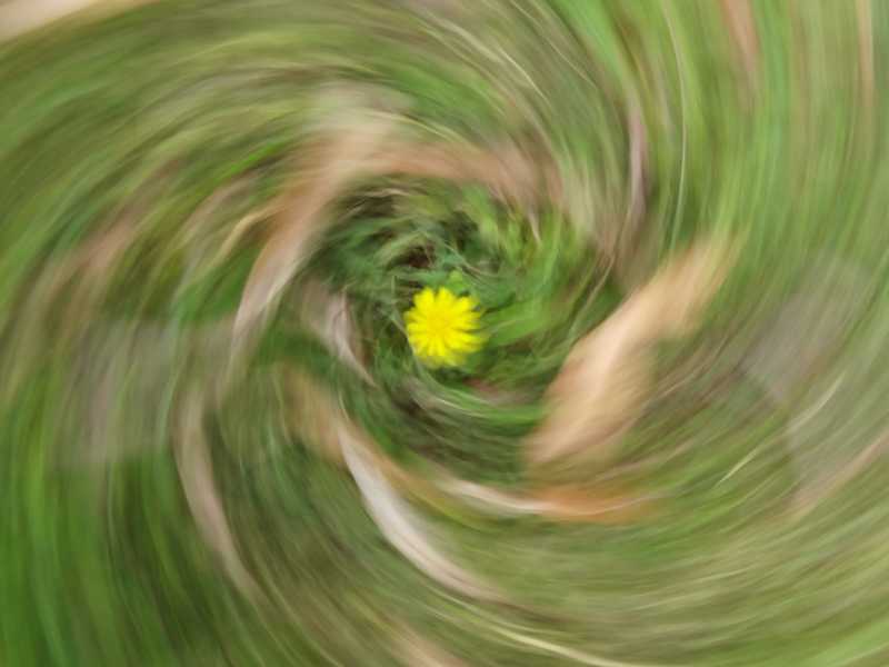 Flor parecida a un diente de león pero más pequeña, he aplicado la misma técnica de movimiento que en Trazos espirales, en este caso el centro coincide con la flor que sale con bastante detalle para el movimiento que hice para hacerla, espero no marearos con tanta espiral, lo verde es césped, lo marrón hojas secas de una falsa pimienta.