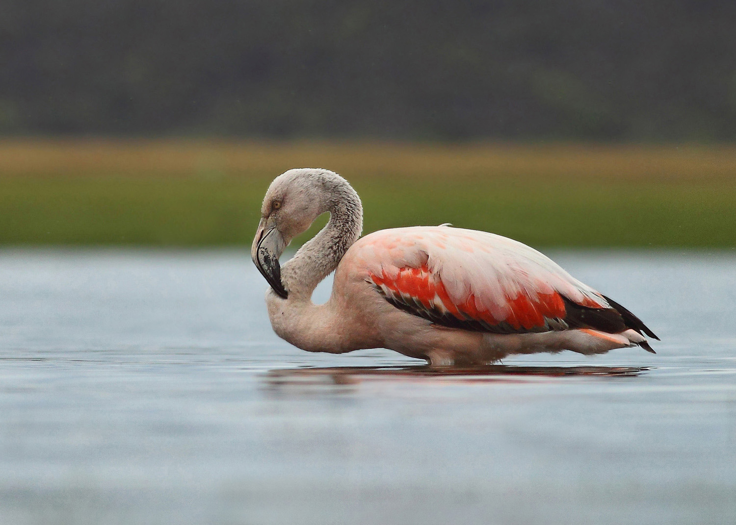 Luego de permanecer panza abajo y prácticamente inmóvil alrededor de media hora, logré la confianza suficiente de éste flamenco como para acercarme, siempre arrastrándome, hasta el borde de la costa del dique pudiendo hacerle algunas fotos...