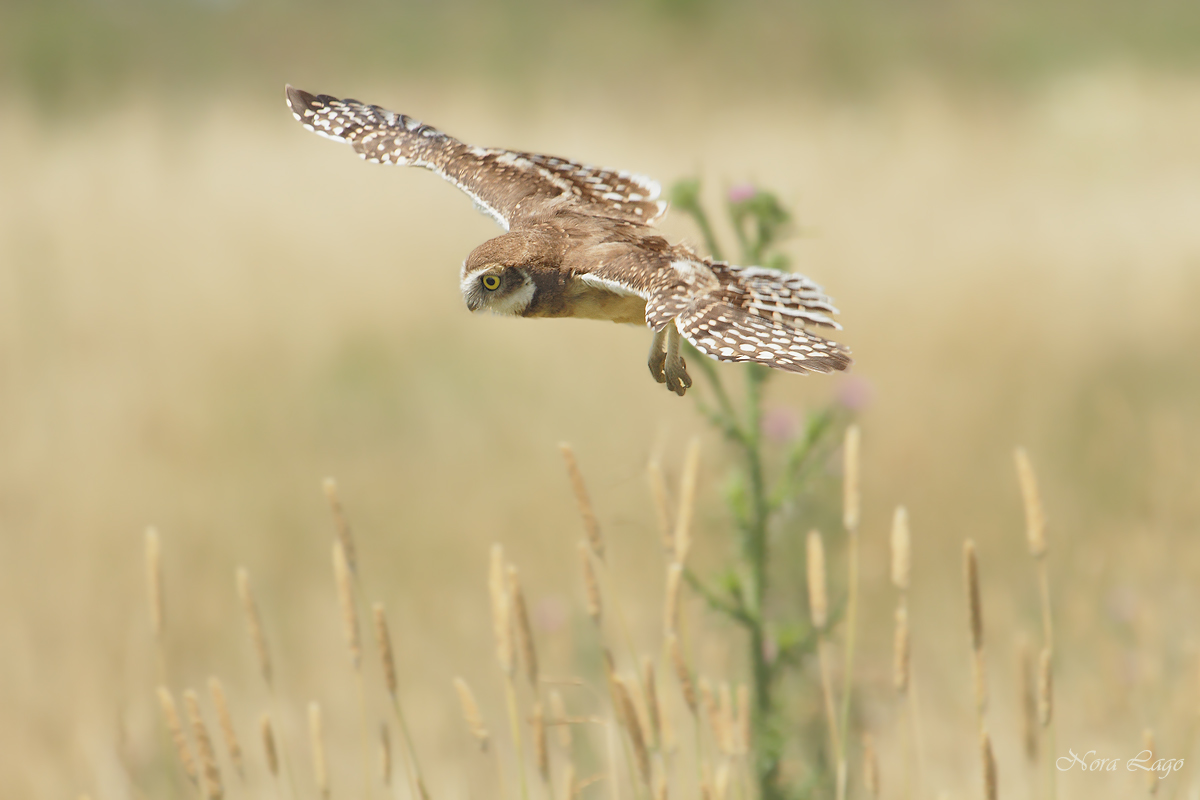 Hermosa foto del vuelo de la Lechucita. Me gusta mucho el ángulo que lograste además, muy buen ambiente y nitidez.