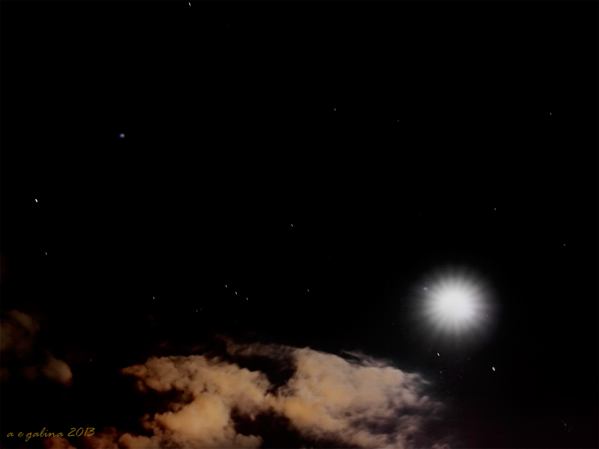 | | gracias,Carlos,aqui,el condicionante es la luna,queria algo de trazo de estrellas,y cerre diafragma,con lo que se ven menos estrellas,pero el efecto en la luna,un abrazo |