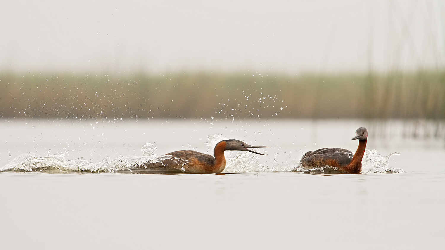 La iluminación realmente no me convence, el reflejo del agua blanco genera una luz muy fuerte sobre los Maca. El fondo interrumpido. Pero me parece que el momento logrado dice mas que lo técnico.
