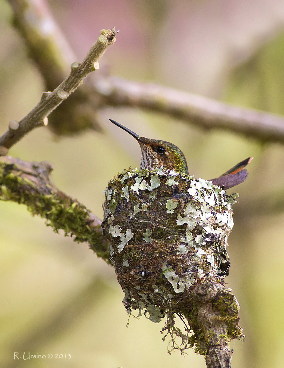 Que belleza el colibrí en su nido. Me encanta la foto.