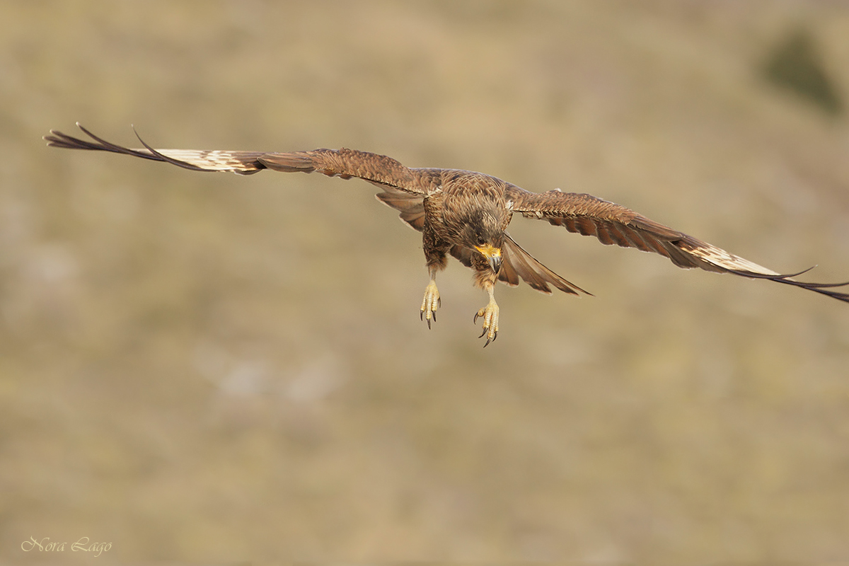 Hermosa foto Nora. Muy bueno el efecto del aire en las plumas que da la idea de movimiento, linda pose de vuelo y muy bueno ese despegue del fondo desenfocado. El punto de vista genial. Buenos detalles.