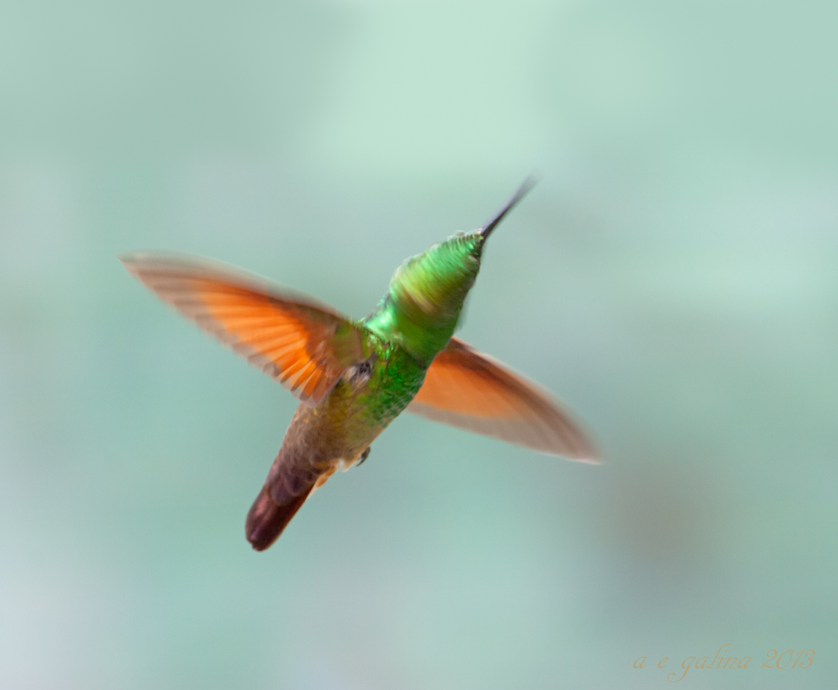 Gracias por pasar y comentar,este colibrí(amazilia berillina macho),esta girando,sobre su propio eje,producto de lucha por territorio,probando isos,velocidades etc,salio esta imagen que me agrado,es la única ave capaz de volor en todos sentidos,mejor que un helicóptero,espero les guste