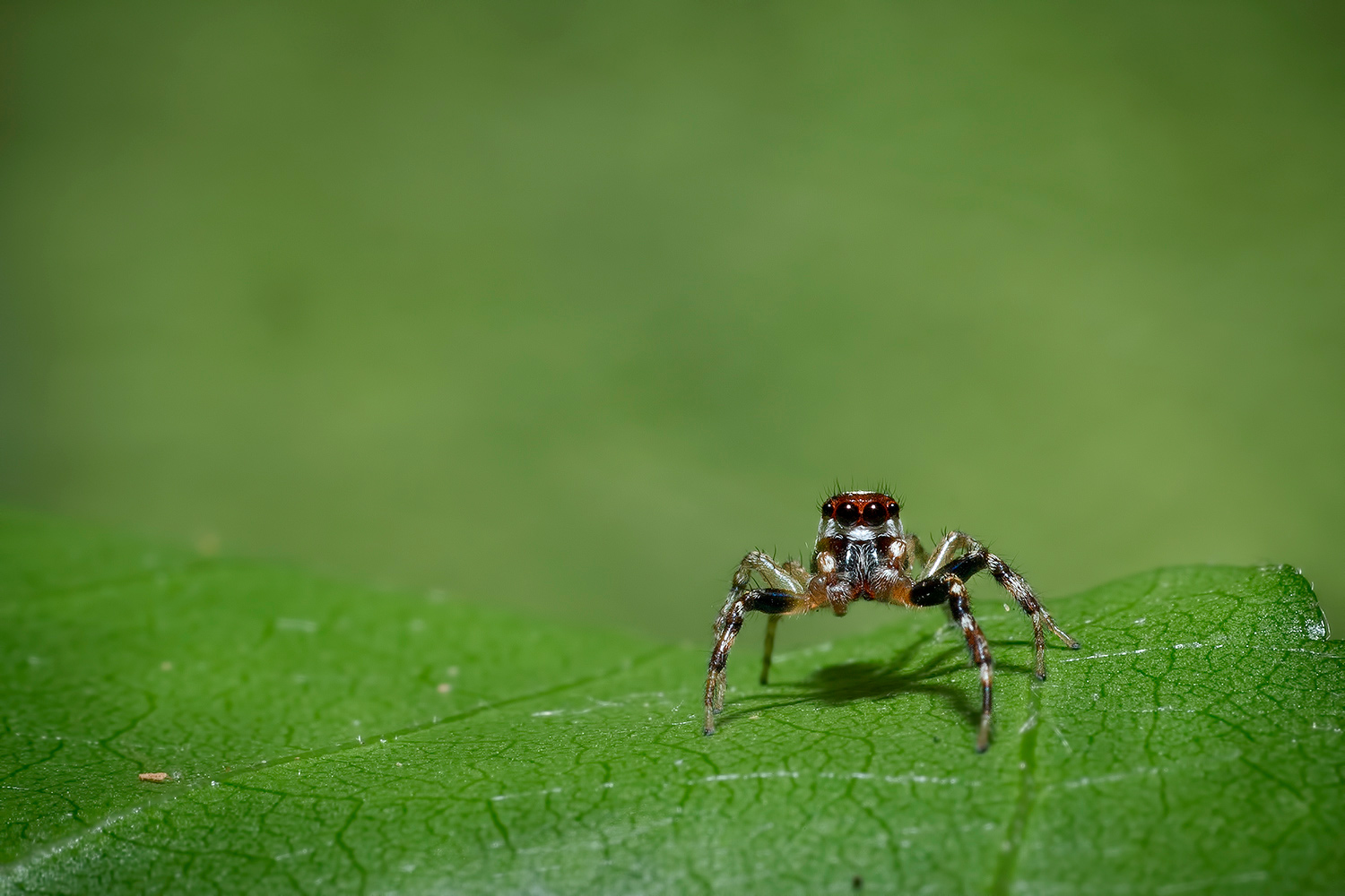 Un fotón Esteban! Me encanta la compo, los colores, los detalles de la araña! Como bien te han dicho pertenece a la familia Saltacidae y al género Phidippus, ya la especie no me animo puesto que hay muchas y es complicado clasificarla. Un lujo!