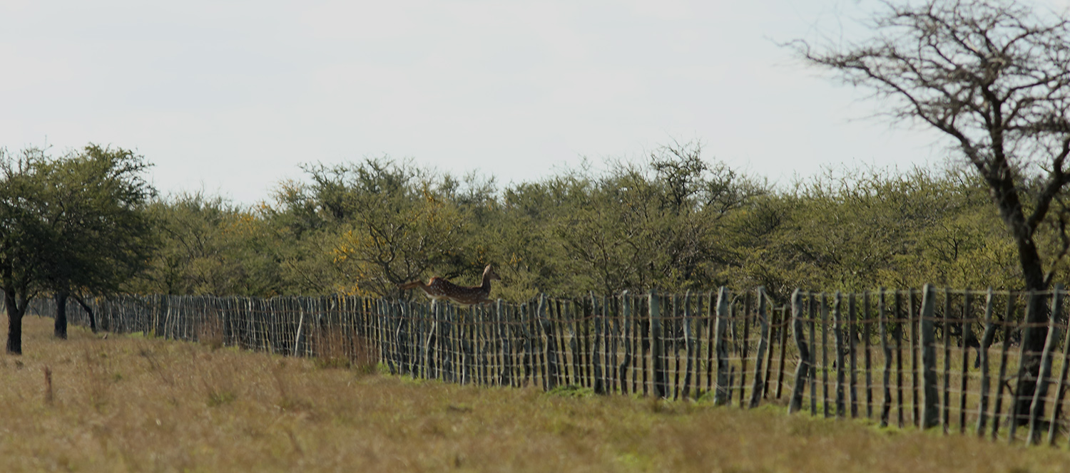 como muchas especies exóticas el ciervo axis no tiene cercos que lo frenen, nunca lo había visto en Curuzú y mucho menos en el campo! estoy sólo a 52 km del pueblo. Tuve la suerte de ir con los amigos chaqueños y la cámara lista, igual hasta que pare el AF pasaron algunos milisegundos, suficiente para que cruze más de la mitad de su ligero cuerpo.