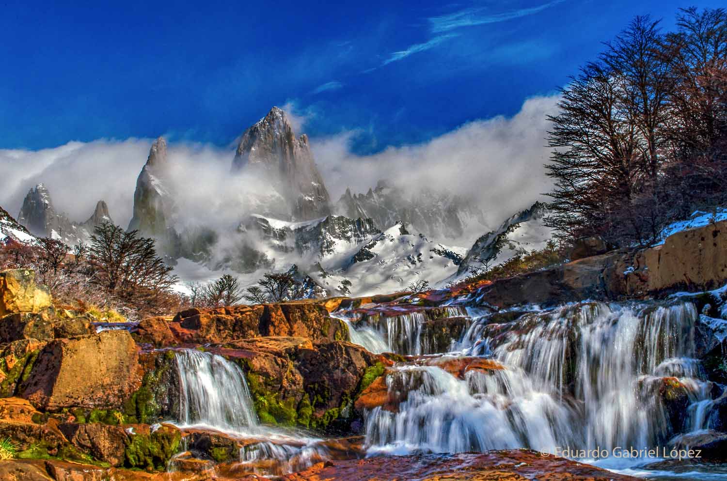 La foto tiene su valor especial para mi ya que probaba una nueva cámara y cuando llegue al lugar me encontré con la sorpresa de que la había perdido en el camino. La tenía en una riñonera y al pasar por una ladera media inclinada y con muchos arbustos resultó que se engancho en una rama y quedó allí colgada. Al borde del colapso y tratando de adivinar por donde había caminado ya que no había sendero la pude recuperé. Luego solo alcance a tomar algunas fotos ya que la batería no daba para mas, todo ello con mucho viento ( que incluso hizo caer el trípode y cámara ) y también frío ( había nevado el día anterior ) . Las montañas no estuvieron del todo despejadas pero por lo menos obtuve alguna tomas con el efecto del agua fluida que era la idea inicial.