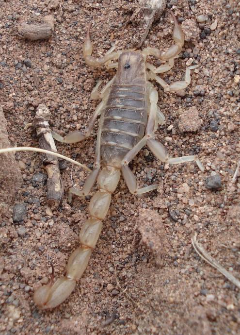 Coincido con Luis, me juego por el género Thytius, de la familia Buthidae. Hay 2 características que te apuntan para ese lado: pinzas delgadas y télson (ultimo segmento de la cola) con aguijón y una púa. Los Bothriuridae, donde está Bothriurus tienen pinzas gordas y cortas y no tienen púa.