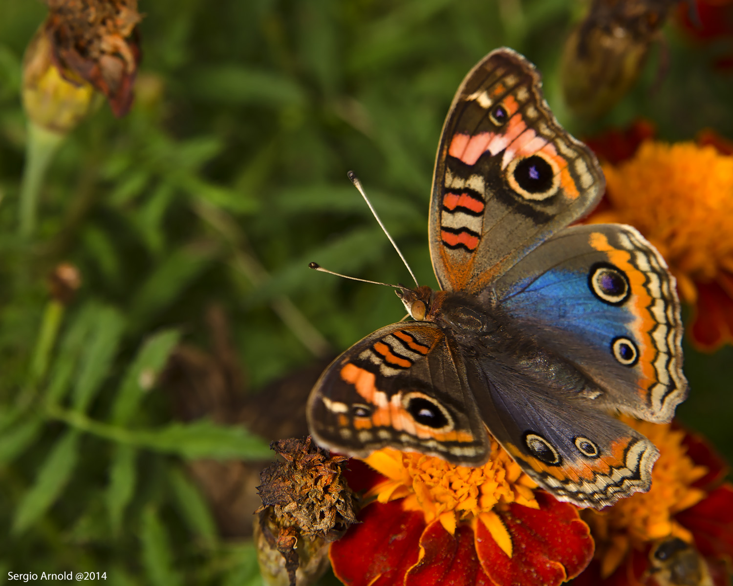 Muchas gracias por pasar y comentar mis fotos de la Barrada. Continuando con las fotos de archivo subo una Cuatro ojos común (Junonia Genoveva Hilaris), una de las más lindas que pueden apreciarse en esta época del año, aunque esta sea del año pasado). Está hecha con dos flashes de relleno, con el 24-85 mm de Nikkor, en modo macro.