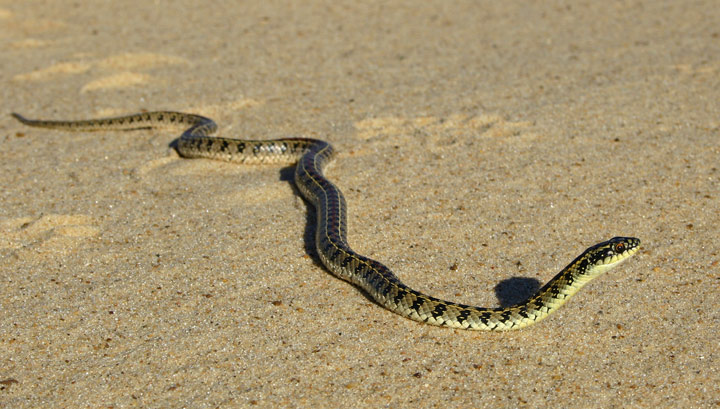 Segun mi libro de identificacion pareceria ser una culebra listada ( Liophis anomalus ). Muy buena y oportuna foto !!