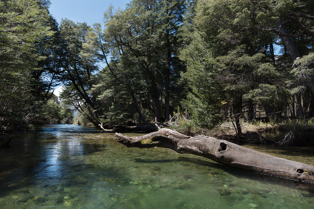 Te lleva la mirada desde el tronco hacia el agua y el agua hacia el fondo, excelente!