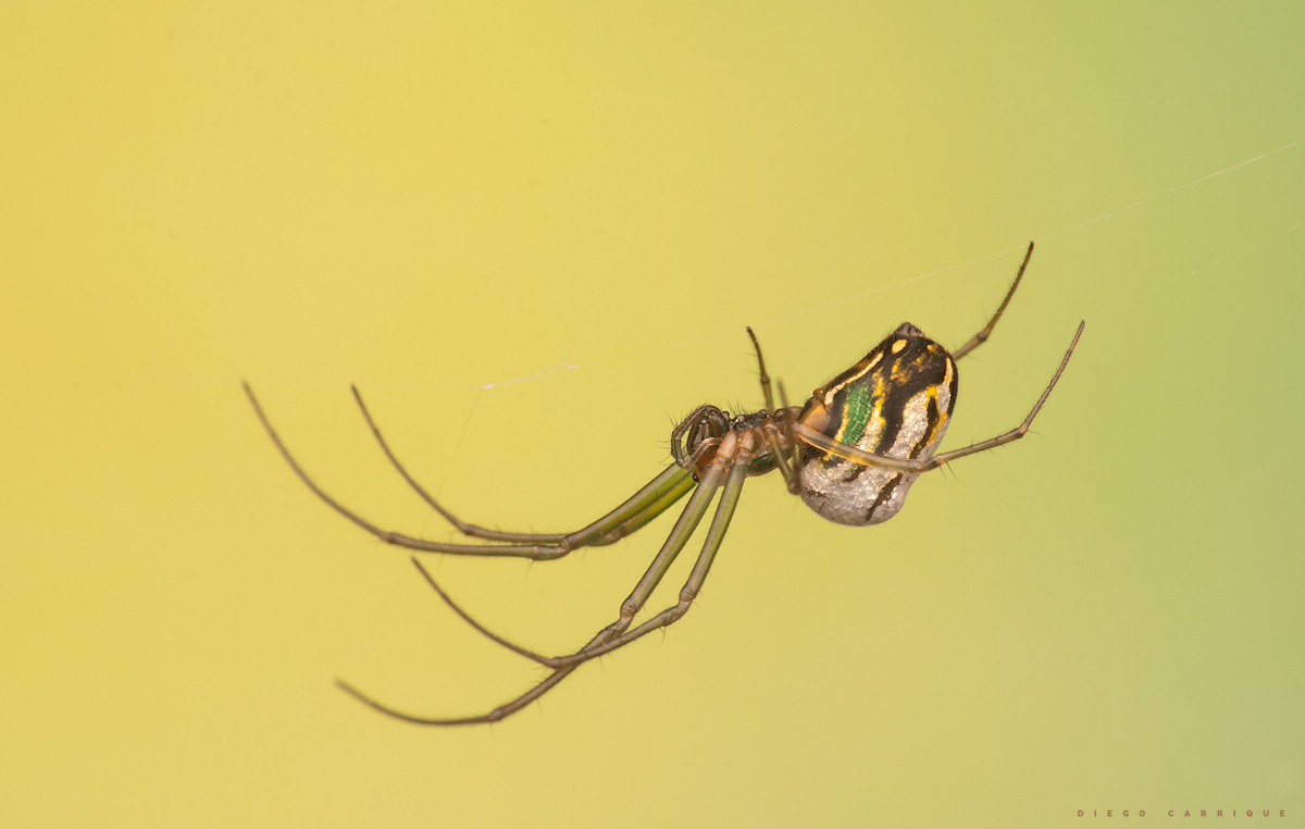 Parece dibujada......Hermosa captura Diego....Un fondo exquisito y una araña desde luego en hermosa pose.....Muy limpia....Felicidades....! de 10