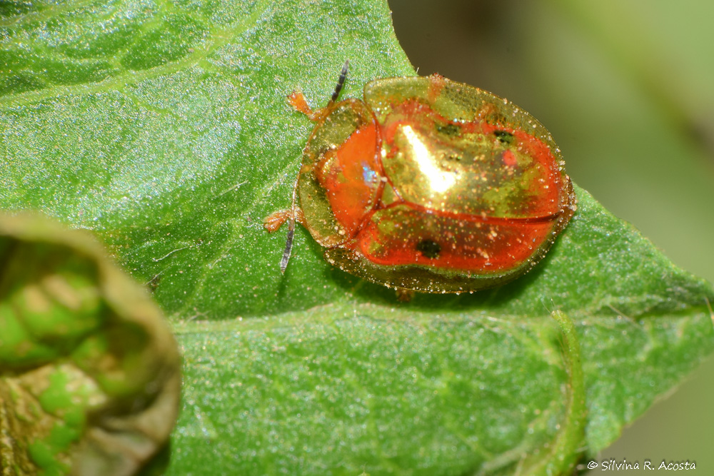 excelente Silvina !! muy buena data!! conocía estos escarabajos tortuga pero nunca los vi de ese color! en estos días subo alguna foto que tengo de esta especie a ver si te gusta