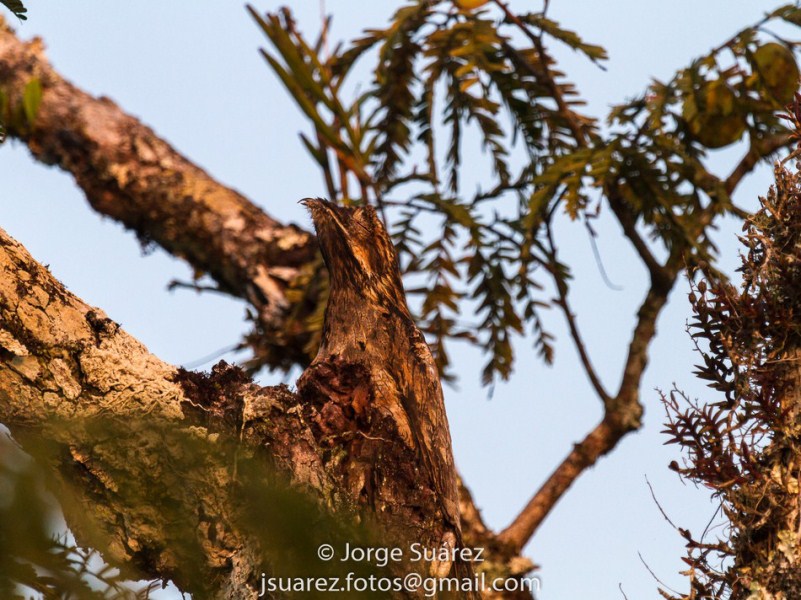 Posada en la punta de un tronco al atardecer y enramada, potencia su camouflage. Espero sea de vuestro agrado