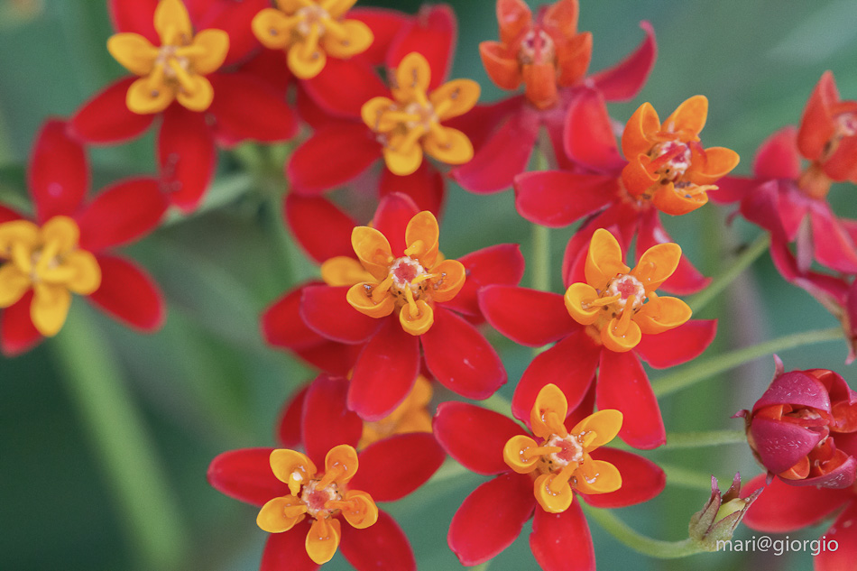 Muy colorida foto Maria, la planta creo es la famosa Asclepias curassavica, famosa por atraer a las monarcas y también, como decis, le dicen viborana. Sds