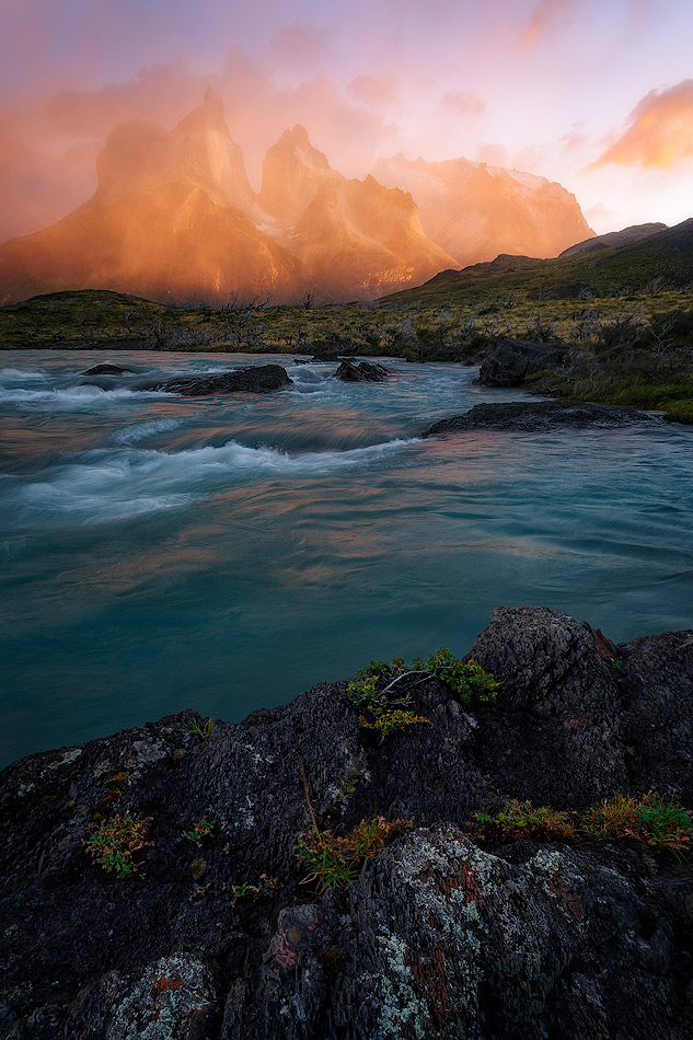 Fotografiar estas escenas desde sus frias sombras y mirar a lo alto como las luces del amanecer entregan de a poco su bella calidez, es un instante tremendamente emotivo y gratificante, momento que el cuerpo pide a gritos un poco de luz para aumentar su temperatura producto de la larga espera fría y húmeda.