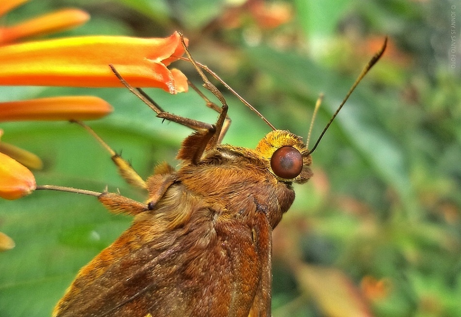Hesperido.....Saludándoles y al mismo tiempo agradeciéndoles sus comentarios a mi última foto.....Esta vez les comparto un hesperido cabezón, muy populares cuando aparecen las lluvias (Mayo/Nov), en el sur de Venezuela......Suelen ser de entre 3 a 5 cm con la cabeza y los ojos muy grandes....Tuve la oportunidad de acercarme lo suficiente para hacerle unas tomas decentes....Espero les guste y gracias por pasar....
