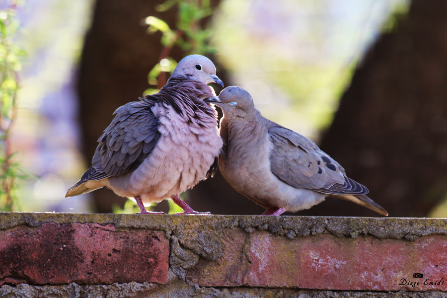 Les dejo esta parejita de torcazas que despues de trabajar un rato largo en la construccion de su nido se posaron en el tapial para acicalarse un poco.-