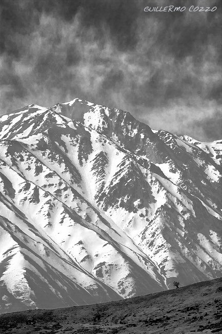 Vi esta imagen en el Cajón del Mapocho, en Santiago de Chile....en una de las zonas más altas del camino (a unos 3.500 metros)....al dar vuelta una curva...me encontré esta visión...que sólo pude encuadrar con el tele....con un gran angular no hubiera podido (salvo que haya podido volar hasta esa laderita...jeje)....