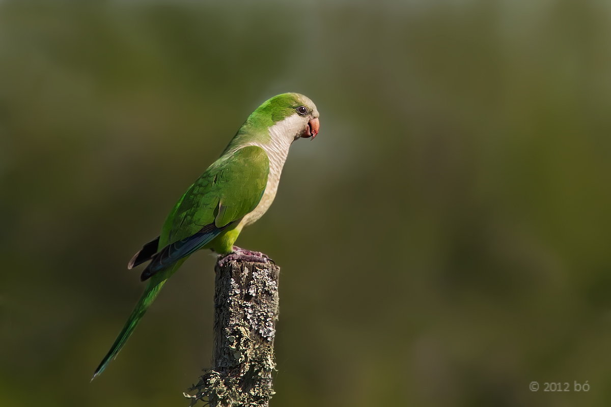 Tan bellas como bullangueras las cotorras, especie invasora en España e Inglaterra por cierto, hermosa foto Carlos! si me permitís, a mi también me atrae la etimología y según entiendo es myio (ratón) y psitta (loro) loro-ratón o loro-roedor tal vez por la práctica de roer los tallos (como los ratones) para armar su nido. Saludos!