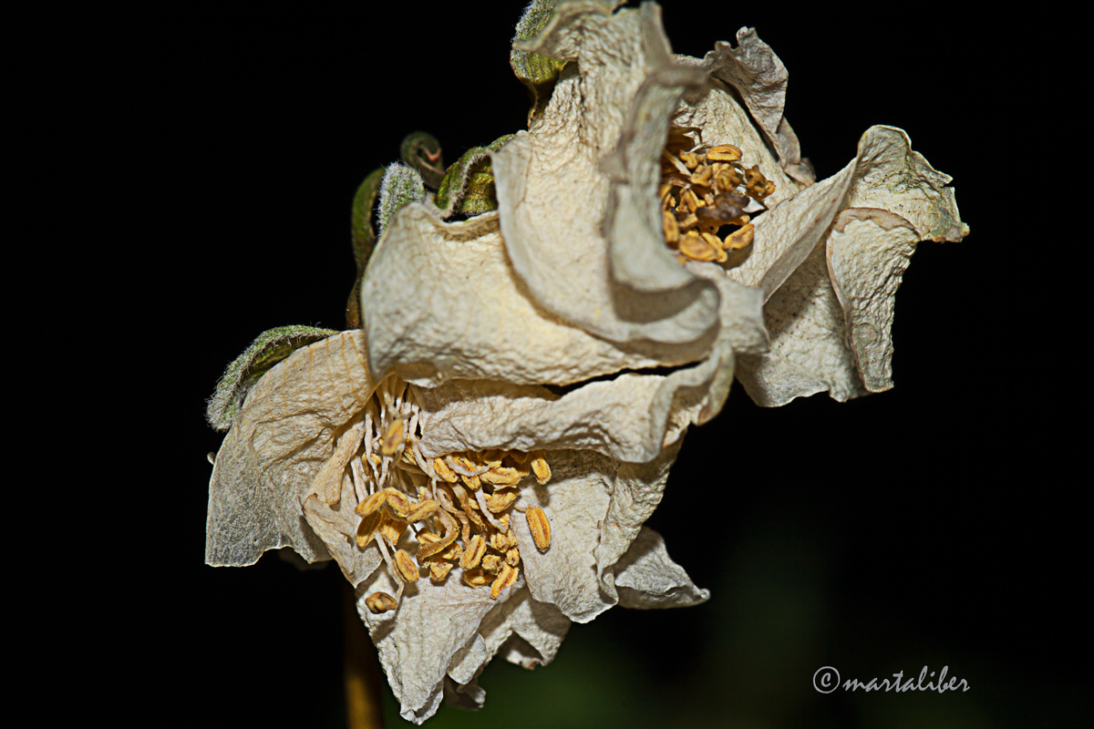 Encontré estas flores que aún secas conservaban su belleza. Las arrugas las hacían muy queribles. Estuve tentada de llevarlas a casa aunque supuse que ahí, donde estaban, podían llegar a generar más vida.