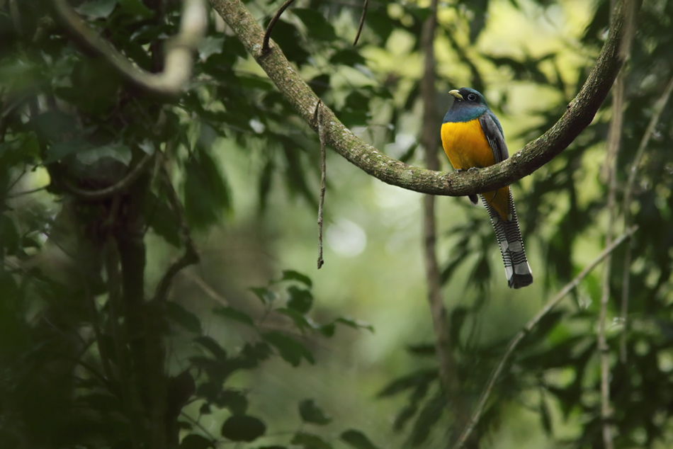 Un Surucuá amarillo en su ambiente de la Selva Misionera.