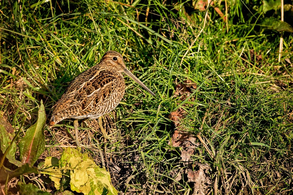Linda foto. Esta especie corresponde a Gallinago paraguaiae (becasina comun) hay ciertas características que la distinguen una de otra; la becasina grande posee una cola mas corta, las patas son pálidas, el cuerpo mas rechoncho, el pico levemente mas largo y una tonalidad un poco mas rufo, lo mas importante es que no habita esta zona sino en alguna de las Islas adyacentes de Tierra del Fuego. Saludos