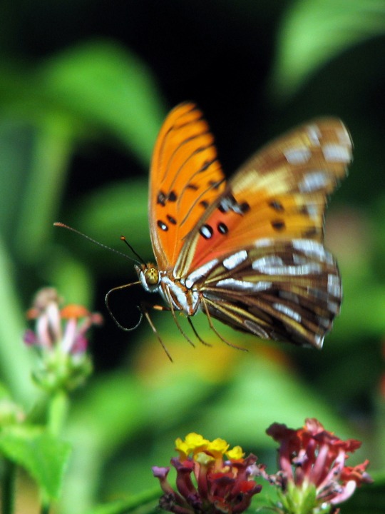 Es un toma magnifica, primero por lo naturalistico pues permite reconocer la Agraullis vanillae o mariposa de espejitos,centrando la la visual en los ojos y patas (nitidos) y que progresivamente se esfuma hacia lo soft sin perder del todo la caracteristicas del insecto, tal vez co mayor velocidad seria muy nitida pero tal vez seria una foto mas sin ese toque diferencial obtenido.