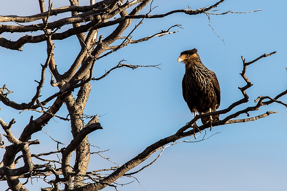 En proximidades del relleno sanitario en Ushuaia, el carancho observa pacientemente la escena y espera su momento para alimentarse.