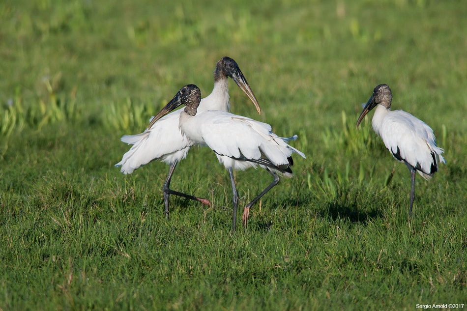 Buenas, muchas gracias por pasar y comentar mi foto del Pico de Plata. Continuando con fotos de Ceibas, subo una toma de tres Tuyuyú (similares a los Tuyangos) en la que se ve una diferencia entre el ave del frente y el de atrás, los que están en el plano a la izquierda, que parece ser un juvenil.