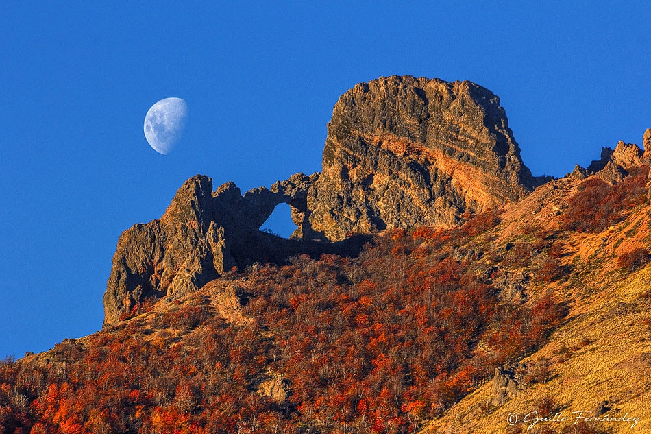 Es una belleza de foto Guillermo, si bien hubiera sido interesante como decís la luna en la ventana, tendrías que reducir el plano y se pierde ese faldeo de arboles otoñales, así me gusta mucho!