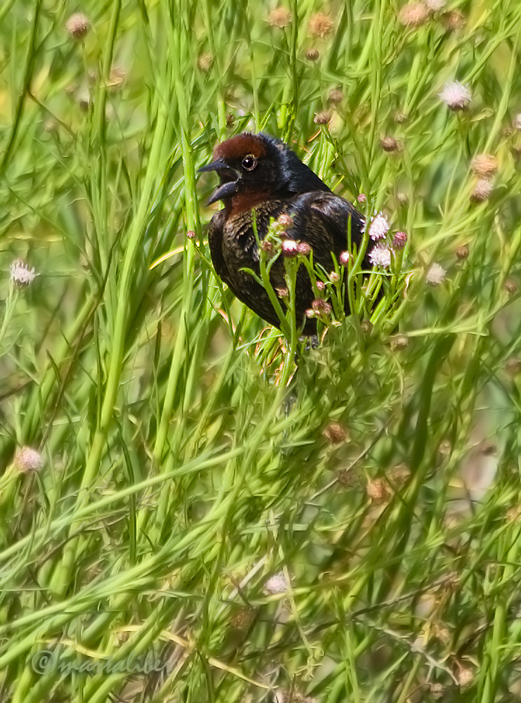 Todavía recuerdo la alegría al verlos en ese ambiente, me encantaron las fotos que sacamos, aunque nunca subí ninguna porque reducir el tamaño con tanta información en las compactas es difícil, se pierde mucha calidad, lo pescaste justo en cantando y tiene muchos detalles ese plumaje, felicitaciones