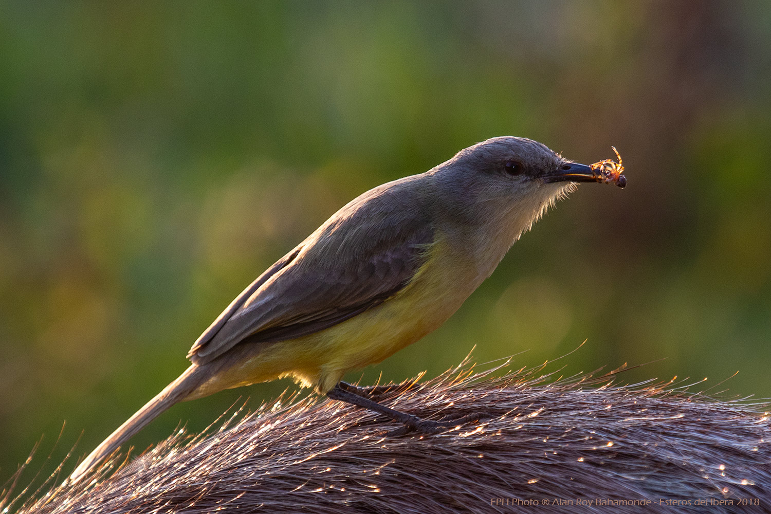 Hermoso contraluz, Alan!! Buen momento con el pico lleno, posado sobre el Carpincho parece. Muy buen foco.