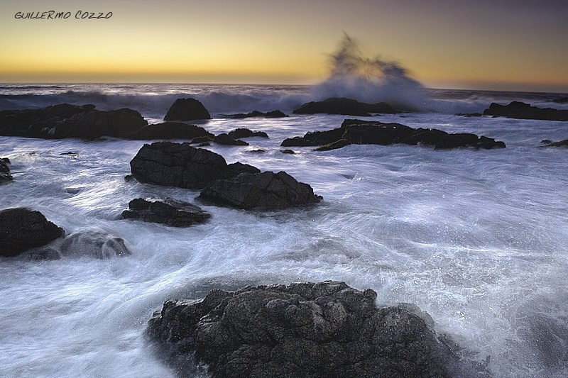 Me encanta esta foto Guillermo! La luz en el agua está espectacular y ni que hablar de las rompientes y el agua movida. Bien valió el riesgo! Lo único que noto es cierta caída del horizonte hacia el lado derecho, pero supongo que es la deformación dada por el angular extremo. Nada demasiado importante y lo pongo como una acotación personal que en nada desmerece una gran fotografía. Un abrazo!