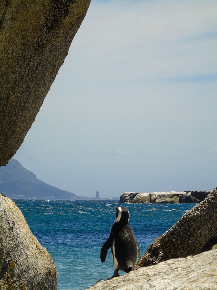 Una colonia de hermosos pingüinos viven en una playa de ciudad del cabo, les dejo una foto de uno de ellos disfrutando del paisaje