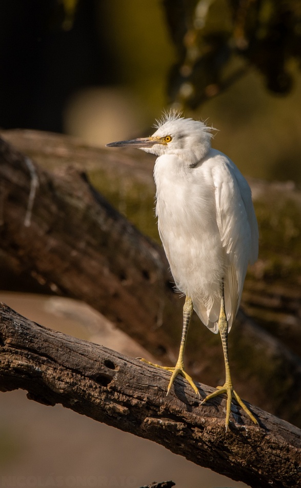 Una pequeña garcita blanca conociendo el mundo que la rodea en sus primeros meses de vida